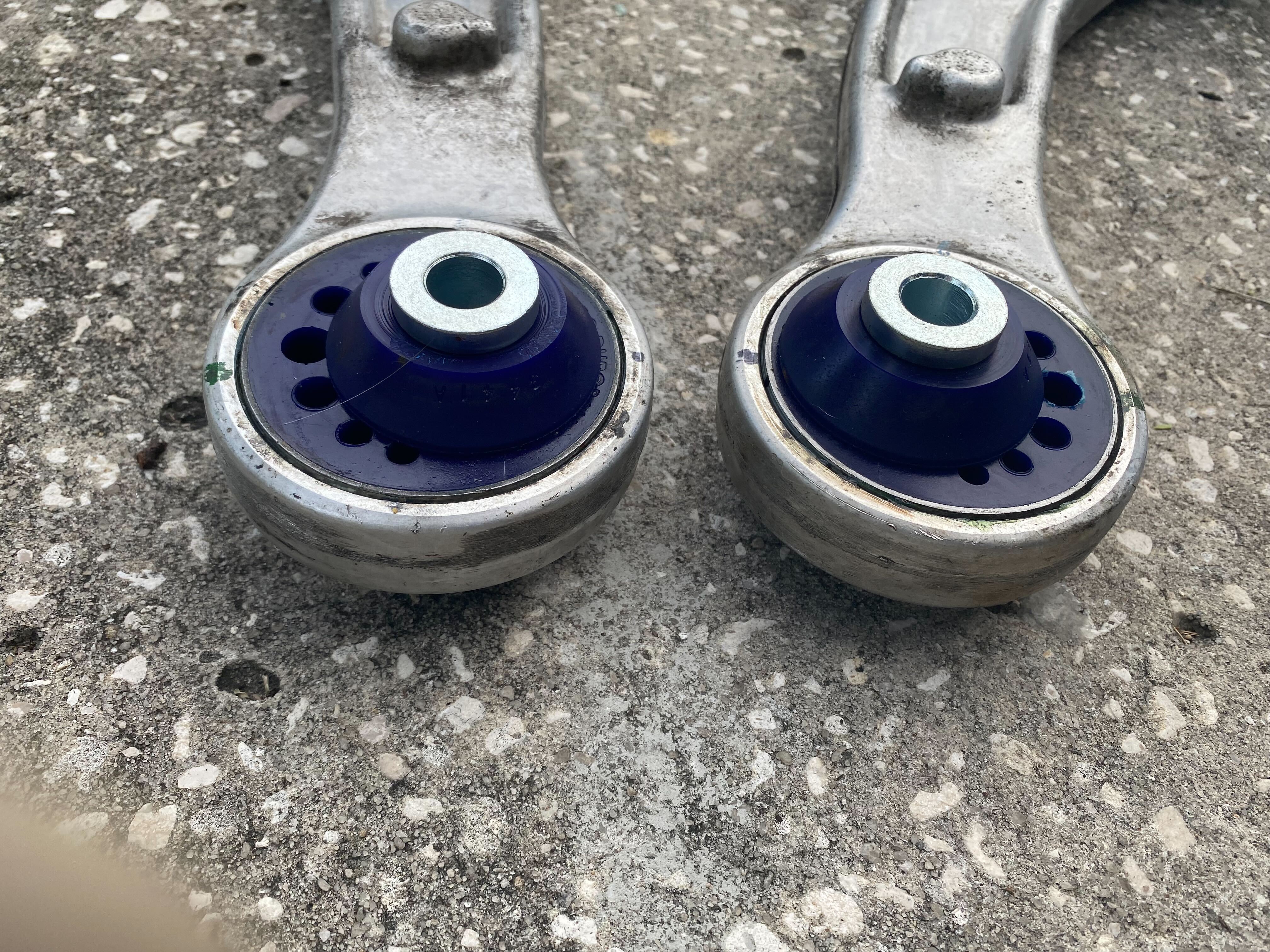 Third, I replaced the smaller bushing at Loren’s recently on my front control arm. Doing so I noticed one of the rear big bushings has cracked. Informed Superpro(bushing company) and got another set for half off, so I’ll be pulling the control arm off again, yay! New bushings