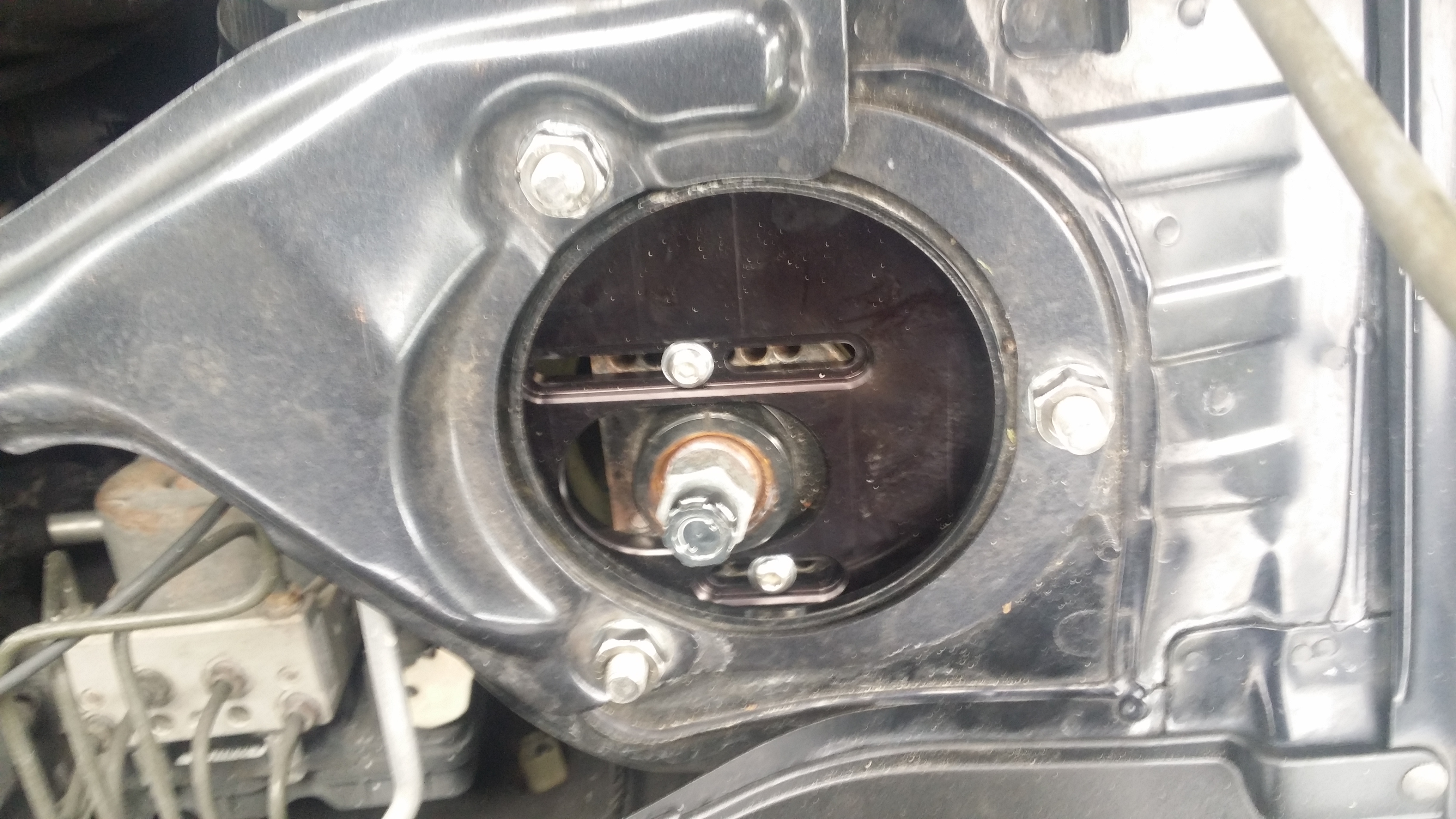 Anyways After everything was all good and installed, I went to aligning the front. I fixed the camber to about what I had previously, -3.5ish. I measured the toe and surprisingly it measured to about 0 toe. Drove it and it was pretty damn straight which was surprising also, but when I turn right I was getting a little grind metallic sound. Check everything under and the brake line bracket was rubbing. My camber plate was at the most positive position so I had to adjust the strut camber bolt and pull the strut out to get it more positive and then adjust the camber plate a little to get it back to where I wanted it. Brake line bracket no longer rubbed. But toe was jacked up now. After messing with toe for a while seemed to be pretty straight when driving and and a small dab or toe out.