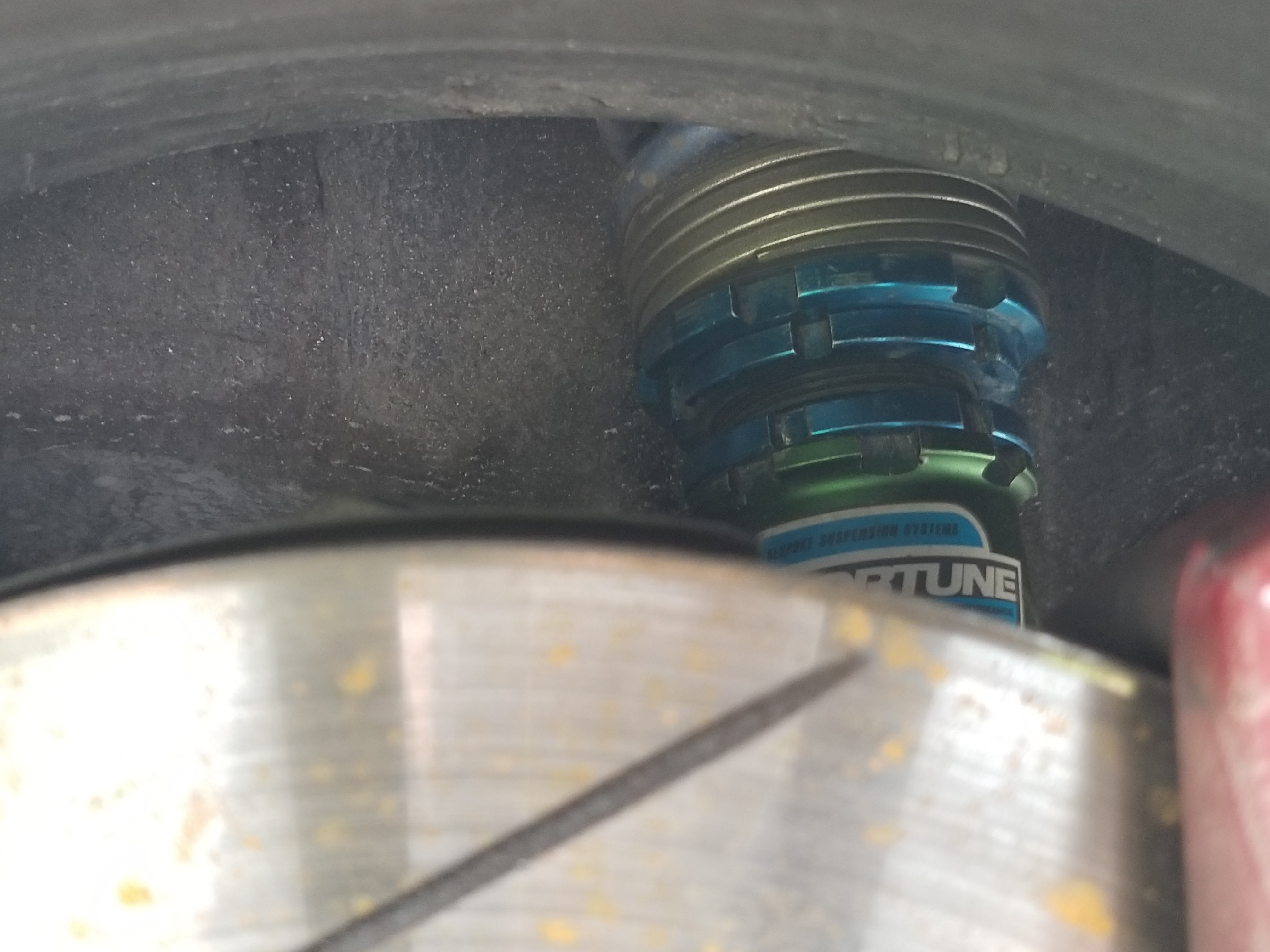 So my helper springs at max could only be about 1.5 inches long out of the 2.4 inches it has. Reason was due to lowering perch didn't have enough threading left for the shock body so I had to have the car lower in the rear than intended.
